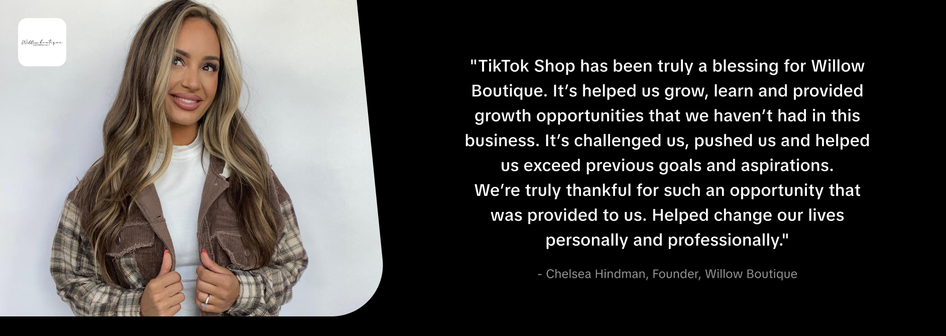 Willow Boutique, a Cincinnati-based online clothing boutique, joined TikTokMall in November of 2022 in an effort to connect and grow their audience. Adopting a consistent LIVE selling strategy, amplified with LIVE Shopping Ads, Willow Boutique has become a top fashion seller in under 1 year.