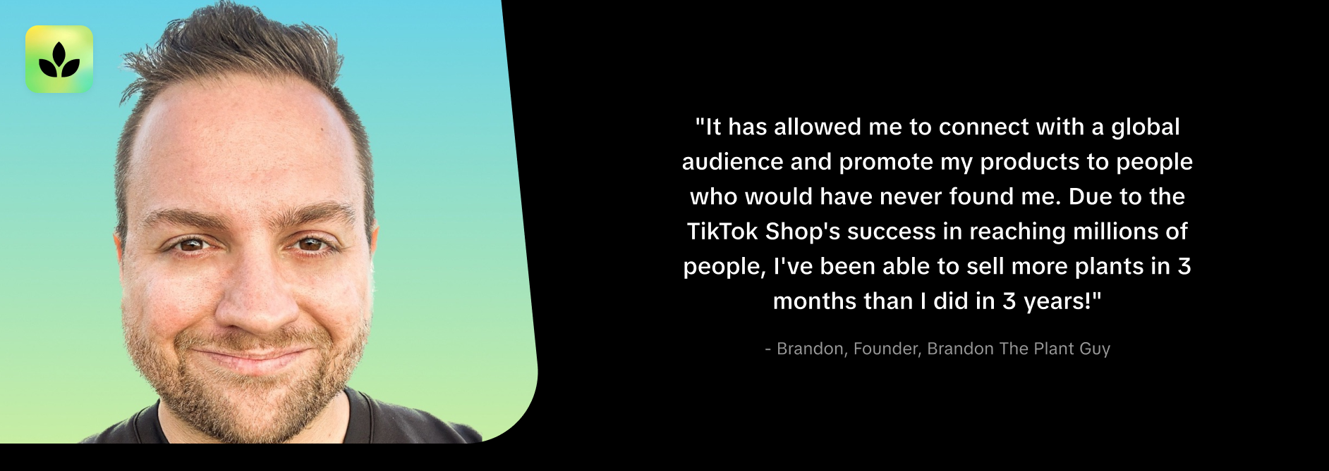 Brandon runs his plant business in his apartment where plant lovers can learn about and purchase plants. He offers LIVE Shopping viewers a valuable Free Gift with any purchase offer, educates how to purchase, and drives urgency by alerting viewers that his ”items sell out quickly, so don’t wait!”